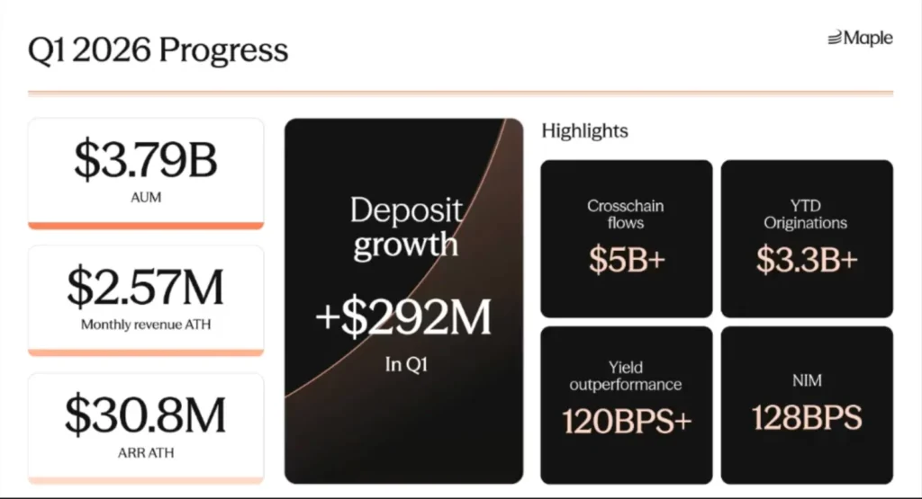 As mentioned earlier, Q1 was marked by significant volatility. Despite this, Maple recorded zero defaults, while collateral ratios remain strong at 160%+. Since the beginning of 2026, 74 margin calls have been successfully resolved, with an average response time of under three hours.